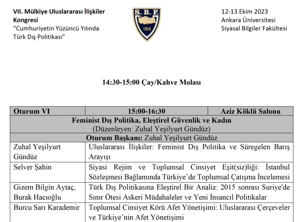 SDG5 Network, VII. Mülkiye Uluslararası İlişkiler Kongresi “Cumhuriyetin Yüzüncü Yılında Türk Dış Politikası” programına “Feminist Dış Politika: Eleştirel Güvenlik ve Kadın” paneliyle katıldı.