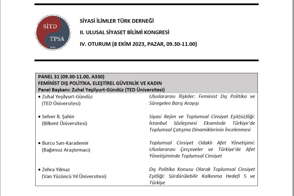 SDG5 Network, II.Siyasi İlimler Türk Derneği Kongresine  “Feminist Dış Politika: Eleştirel Güvenlik ve Kadın” paneliyle katıldı.