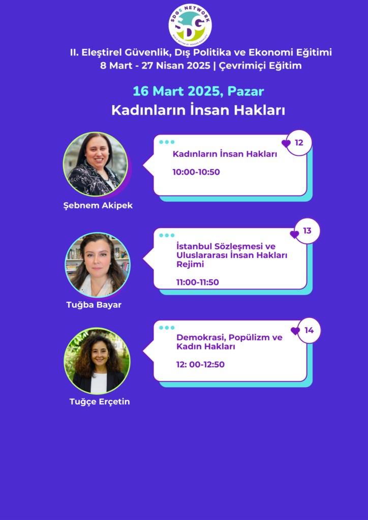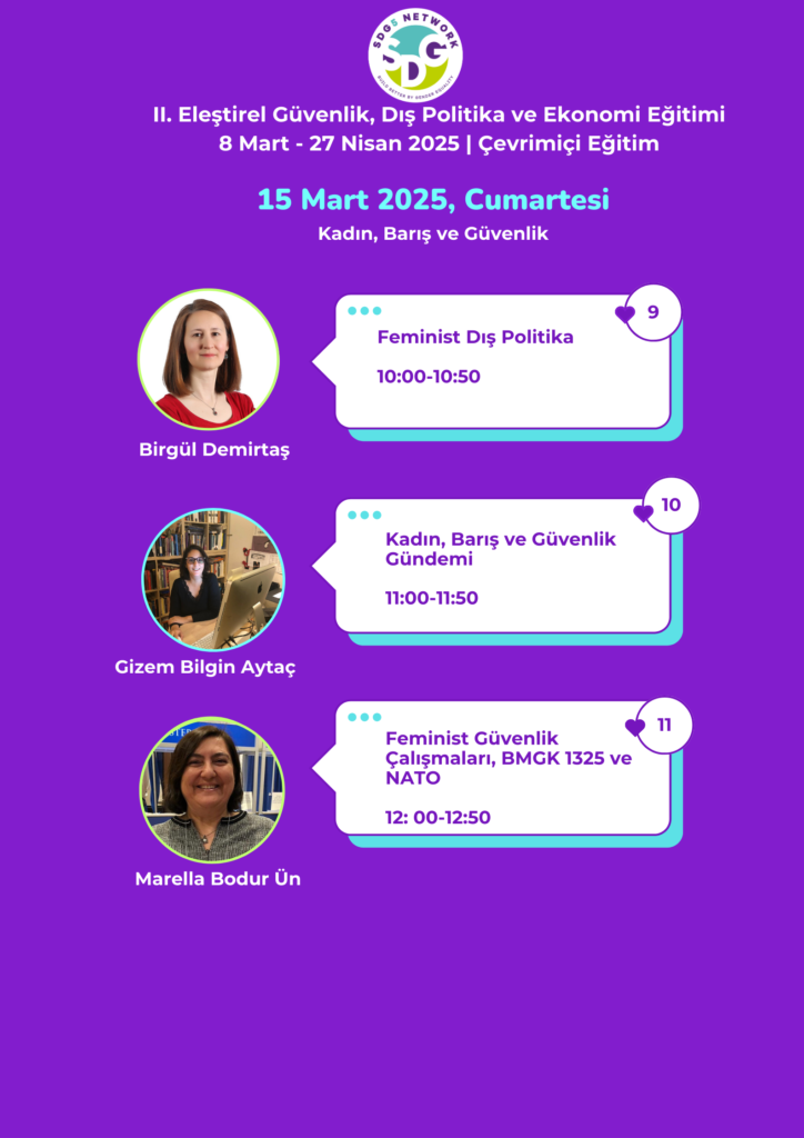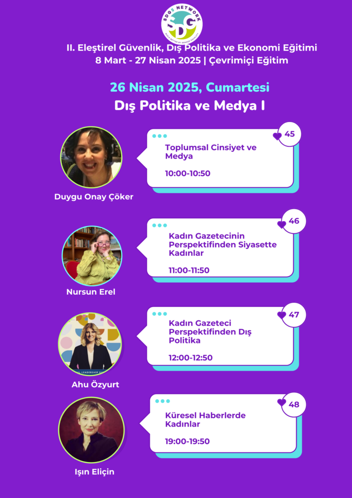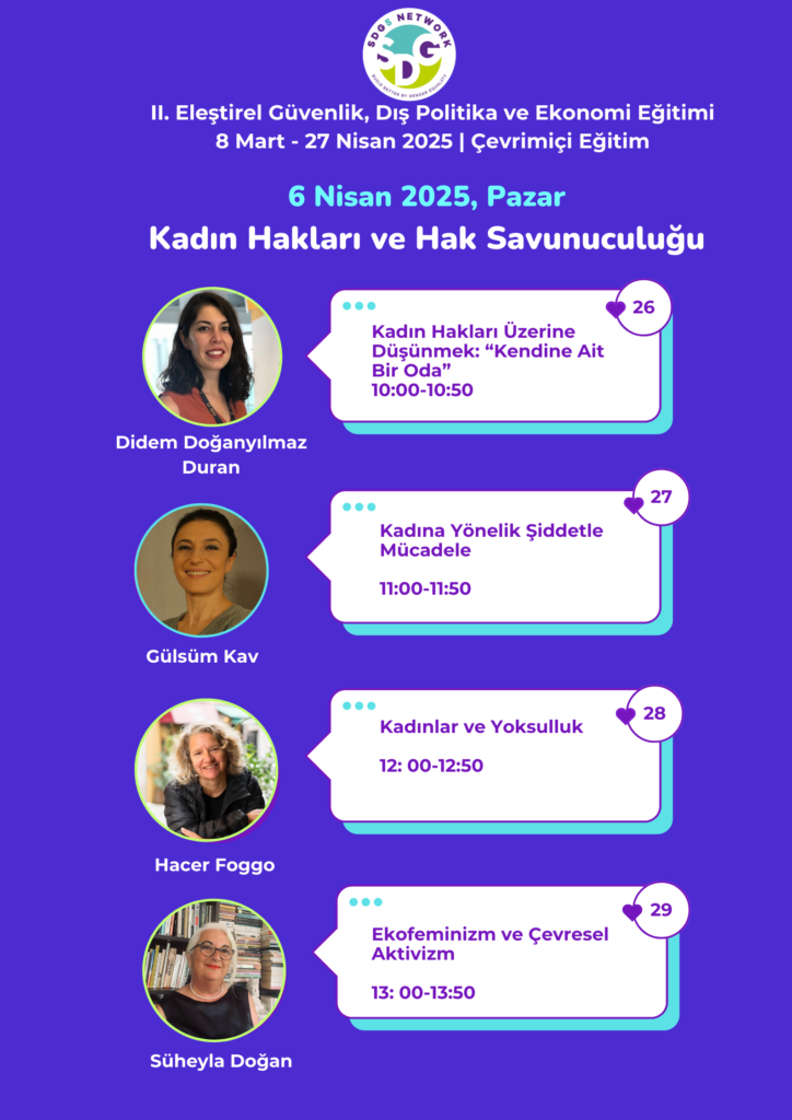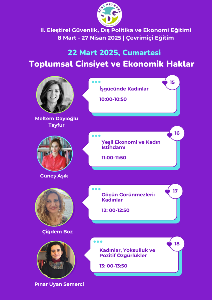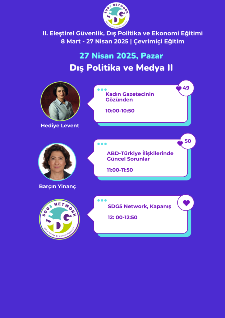 SDG5 Network tarafından düzenlenen Eleştirel Güvenlik, Dış Politika ve Ekonomi Eğitimi, 8 Mart- 27 Nisan 2025 tarihleri arasında gerçekleşmiştir.