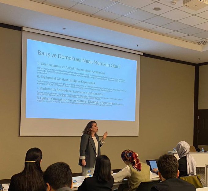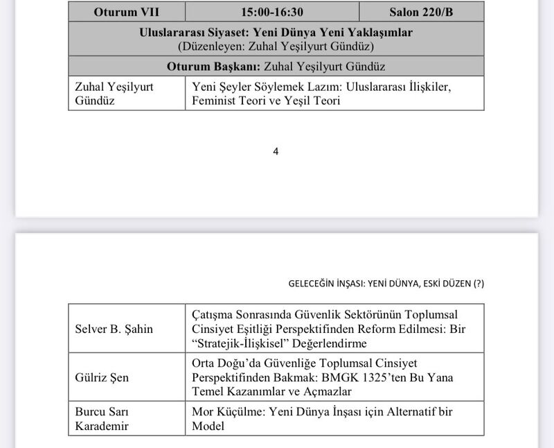 Prof. Dr. Zuhal Yeşilyurt Gündüz (@ZuhalYeilyurtG1) III. Uluslararası Hitit Güvenlik Çalışmaları Kongresi’nde Tematik Oturumunda ‘Feminist Dış Politika Ve Afet’ başlıklı konuşmasını yaptı ve afet bağlamında #feministdışpolitikanın#3R prensibinin uygulanmasının altını çizdi. #KadınlarNerede? sorusunu sormayı her zaman hatırlamamız gerektiğini hatırlattı.