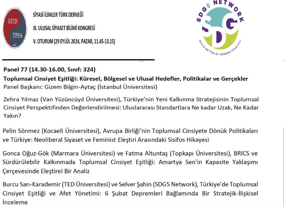 SDG5 Network olarak, 28-29 Eylül 2024 tarihlerinde, YeditepeUni’nde gerçekleşen ve Siyasi İlimler Türk Derneği tarafından düzenlenen #IIIUlusalSiyasetBilimiKongresi‘ne katıldık.