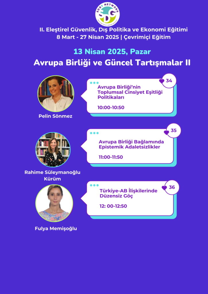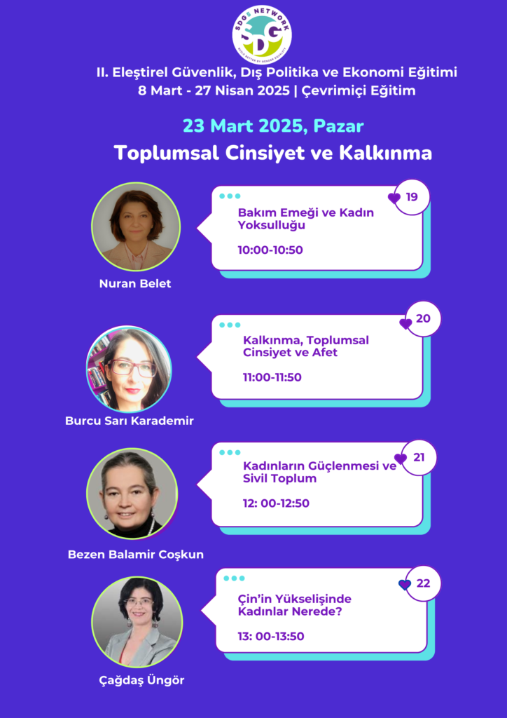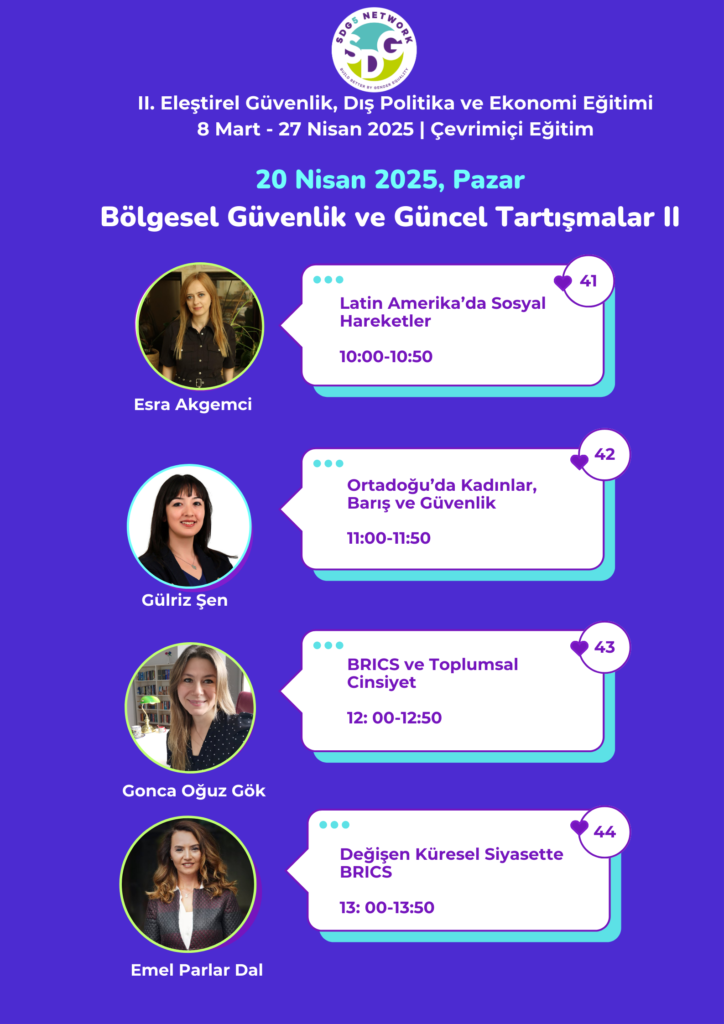 SDG5 Network tarafından düzenlenen Eleştirel Güvenlik, Dış Politika ve Ekonomi Eğitimi, 20 Nisan-1 Haziran 2024 tarihleri arasında gerçekleşecektir.