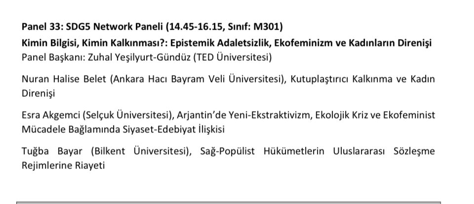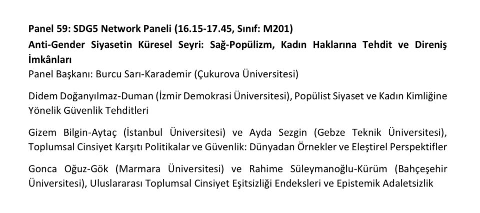 2. Panel 33: SDG5 Network Paneli (14.45-16.15, Sınıf: M301)